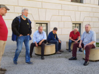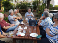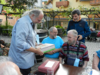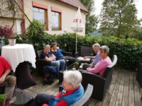 Vor der Rückfahrt zur Unterkunft genossen wir noch die letzten Sonnenstrahlen des Tages in einem kleinen Biergarten in Klöch. Dort überreichten wir Herrn Dr. Moser ein kleines „Dankeschön“ für die gute Organisation der Exkursion.
