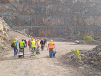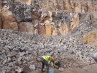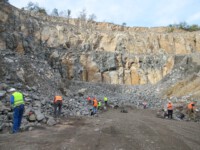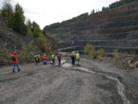 Von dort ging es am Nachmittag direkt weiter zum Steinbruch Klöch. Nach dem Abstieg zu den unteren Sohlen haben sich schnell kleine Gruppen gebildet, die sich über den gesamten Bruch verteilten.