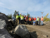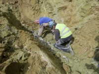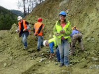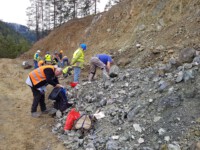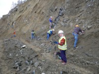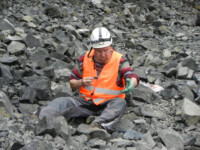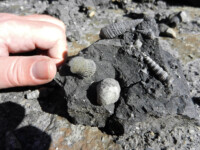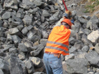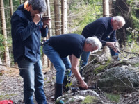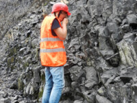 Nach einer kurzen Fahrt erreichten wir einen Aufschluss, an dem wir nach Olivin-Bomben suchten.