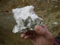 Trotzdem wollten wir vor der Heimfahrt noch einmal unser Glück versuchen. In Sankt Stefan ob Leoben im Lobmingbruch fanden wir dies auch! Wir fanden eine ganze Ader mit Hydromagnesit. Ein Mitarbeiter des Steinbruchs war so freundlich sie uns mit dem Bagger freizulegen. Spätestens jetzt waren die Kofferräume unserer Autos bestens gefüllt.