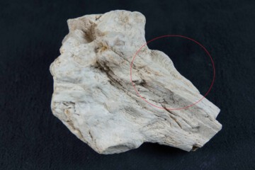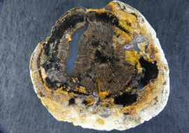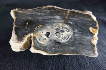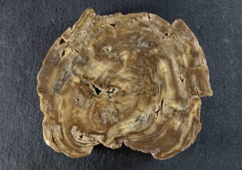 Fossiles Holz mit aufgewachsenem Baumpilz