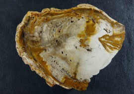 Fossiles Holz sieht nicht nur gut bei Querschnitten aus, auch Längsschnitte können durchaus interessant sein: