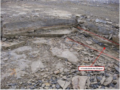 In den Jahren 2008 bis 2012 waren die Fundmöglichkeiten im Unterkeuper des Stbr. Bopp in Ilsfeld außergewöhnlich gut und es konnte eine reiche paläobotanische Flora geborgen werden. Funde von Tierfossilien waren eher die Ausnahme, so dass der Fund der Hai-Eikapsel sehr überraschend und völlig unerwartet für ihn kam. Die ersten 15 Minuten nach dem Auffinden des Fossils dienten ihm somit erst einmal zum „beruhigen“ des Herzschlags auf Normalpuls. Was er gefunden hatte war ihm auf jeden Fall sofort klar, eine Hai-Eikapsel. Solche Hai-Eikapseln, in der Fachsprache als „Palaeoxyris“ genannt, sind in der Paläontologie generell nichts außergewöhnliches. Bekannt sind diese u.a. aus dem Karbon oder dem Rhät-Lias, jedoch mit sehr viel geringeren Abmessungen.