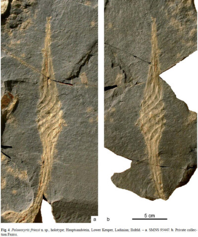 „Palaeoxyris Friessi“, benannt nach dem Finder des Fossils Gerald Frieß/Großbottwar. Wissenschaftlich beschrieben und publiziert durch Dr. Ronald Böttcher SMNS Stuttgart in 10/2010. Der Holotypus liegt als Positiv/Negativ-Split vor, eine der Platten (SMNS 95447) wurde dem Staatlichen Museum für Naturkunde Stuttgart SMNS gestiftet, die Gegenplatte befindet sich in der Sammlung Frieß